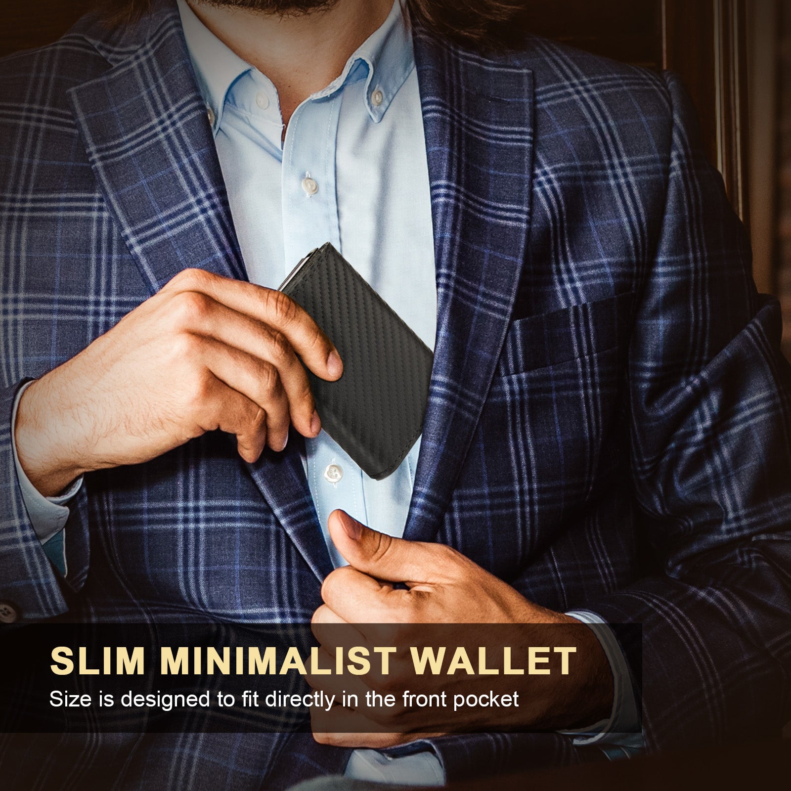 - 💳【Carbon Fiber Pattern Leather】This men wallet is designed for daily carry and is made of high-quality leather for enhanced durability compared to traditional slim wallet. Its men wallet design allows it to fit easily into any pocket, providing convenience and security wherever you go.