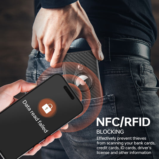 Pop Up Wallet for Credit Card Holder Compatible with Apple Air Tag - Smart Airtag Wallet for Men with ID Window and 12-15 Cards Capacity, RFID Blocking, Front Pocket, Cash Slot,Carbon Fiber Leather